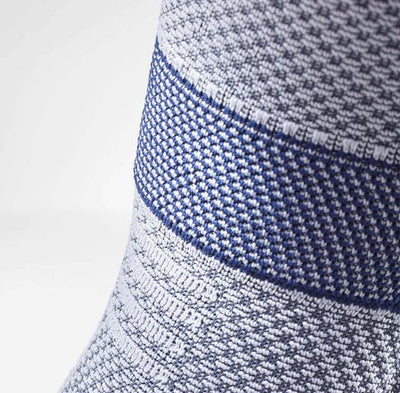 Le tricot Train se caractérise par sa compression médicale et sa haute respirabilité. Les zones élastiques extensibles à l'arrière du genou et du mollet assurent une liberté de mouvement maximale et un confort durable. Les personnes sensibles à la pression bénéficient également des bords agréablement doux. La bande de préhension en silicone située à l'intérieur du bord supérieur de l'orthèse garantit que le GenuTrain® A3 est maintenu en toute sécurité pendant les activités quotidiennes ou les exercices thérapeutiques, même en cas de tissu conjonctif faible. Les aides à l'enfilage intégrées sont faciles à saisir et permettent donc une manipulation facile avec peu d'effort